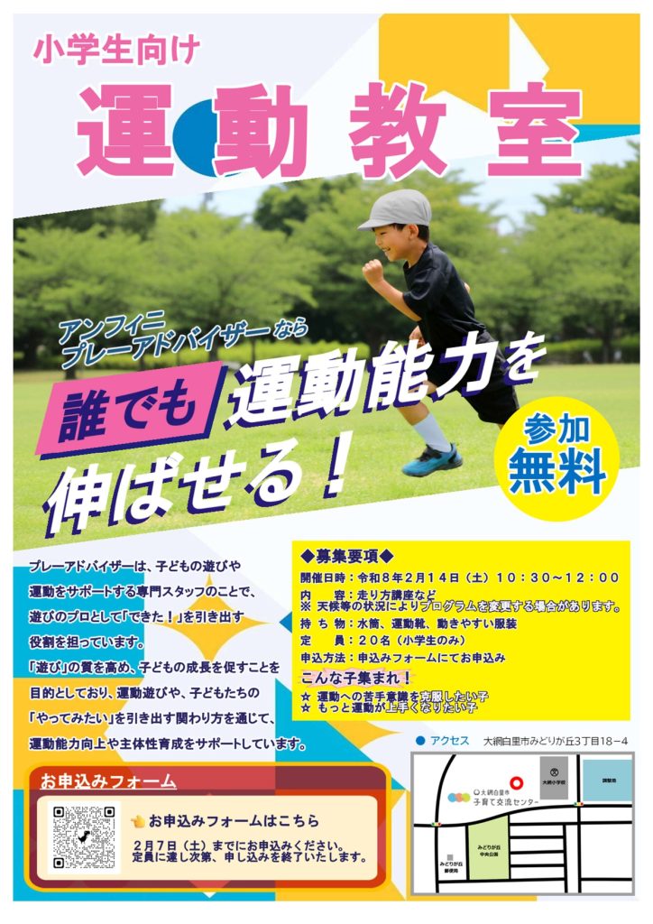 アンフィニプレーアドバイザーによる小学生向け運動教室を開催します!